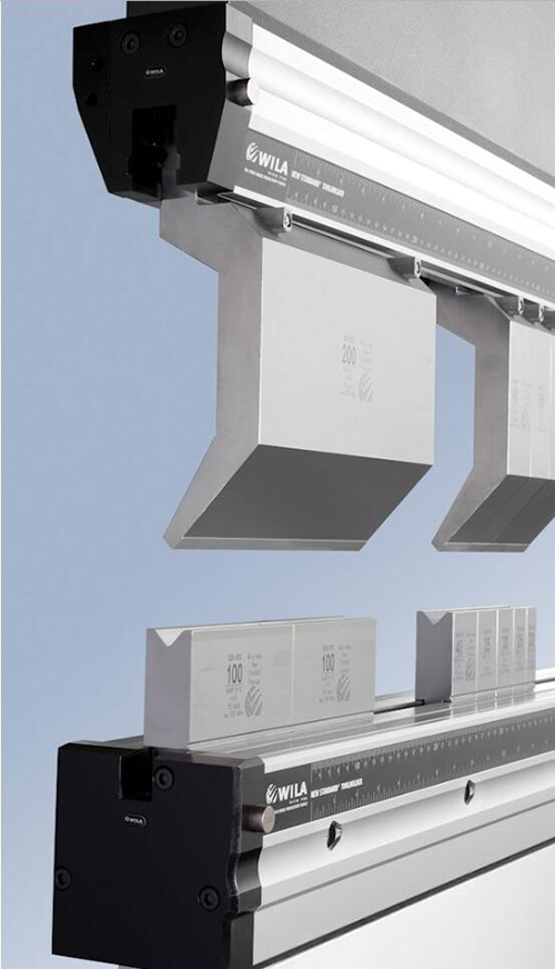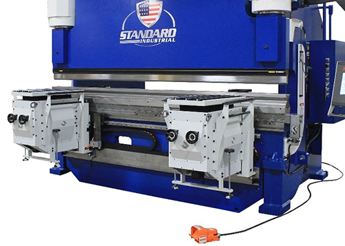 American or New Standard Style Ram Clamping. Extremely heavy duty, spring loaded die clamps for easy, fast die change. Accepts all American style standard and precision ground tooling. All press brakes can be ordered optionally with quick-change, powered ram clamping systems and European clamping systems in lieu of manual system.
